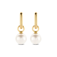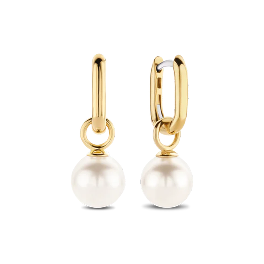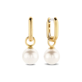 Dámske strieborné TI SENTO náušnice pozlátené žltým zlatom so syntetickými perlami.