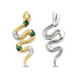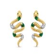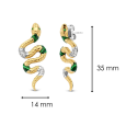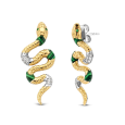 Strieborné dámske náušnice TI SENTO s výraznám dizajnom hada so žltým pozlátením, so zelenými kameňmi v smaragdovom odtieni a čírymi zirkónmi.
