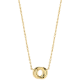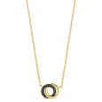Strieborný dámsky náhrdelník TI SENTO s pozlátením žltým zlatom a čiernymi zirkónmi zdobí prívesok z dvoch prepojených kruhov s kontrastným leskom.