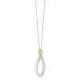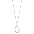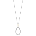 Dámsky strieborný náhrdelník TI SENTO so žltým pozlátením na úchyte zaujme slzovito tvarovaným príveskom lemovaným radom čírych zirkónov, ktorý pôsobí jemne a ženskoy. Lesklý zlatý akcent detailu dodáva teplý odtieň a vytvára rafinovaný kontrast so strieborným podkladom.