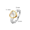 Strieborný prsteň TI SENTO so žltým pozlátením zdobí perleťové srdce zasadené v pozlátenom ráme, ktorý krásne zvýrazní jemnú hru odleskov.