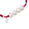 Dámsky textilný ružový náramok TOUS s perlami a medvedíkom.