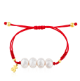 Dámsky textilný náramok TOUS s perlami a medvedíkom. Strieborné časti sú pozlátené 18-karátovým žltým zlatom.