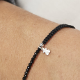Dámsky textilný náramok TOUS so spinelmi a strieborným medvedíkom.